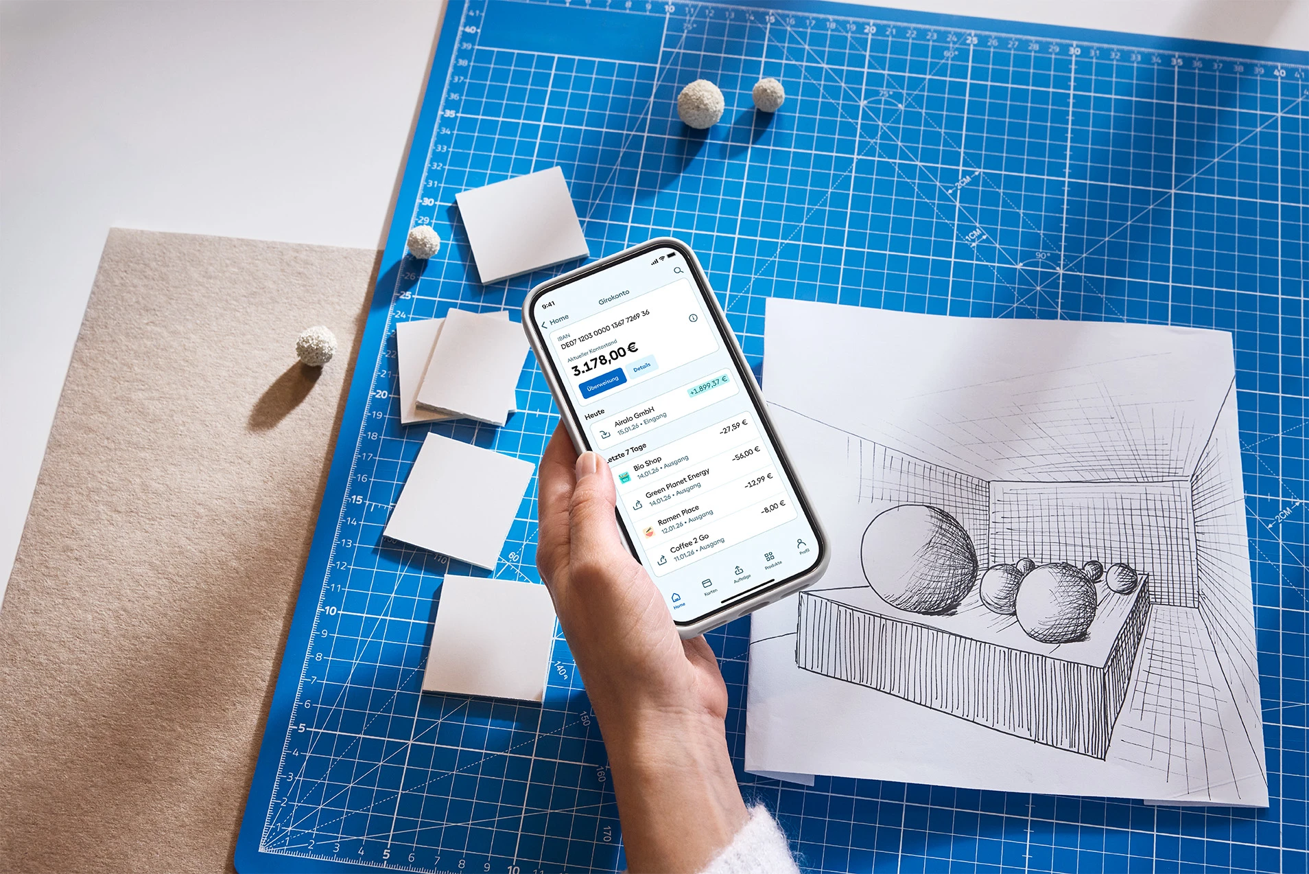 Direkt nach Kontoeröffnung erhältst du Zugang zum Banking und deine IBAN.